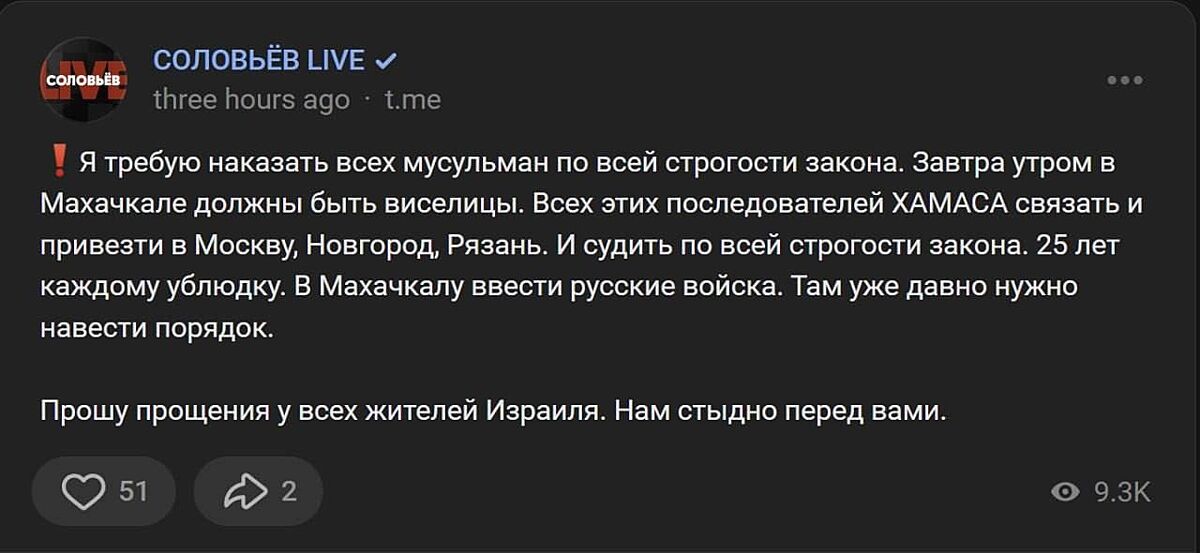 вечірній мудозвон вже пропонує шибениці в Махачкалі