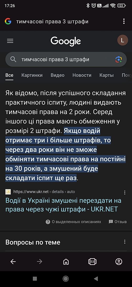 Зараз продовжує їздити, хоча термін тимчасових прав пройшов. Слухати про те, що не можна, не хоче. Каже, що поліцейські перевіряли документи і нічого не сказали.