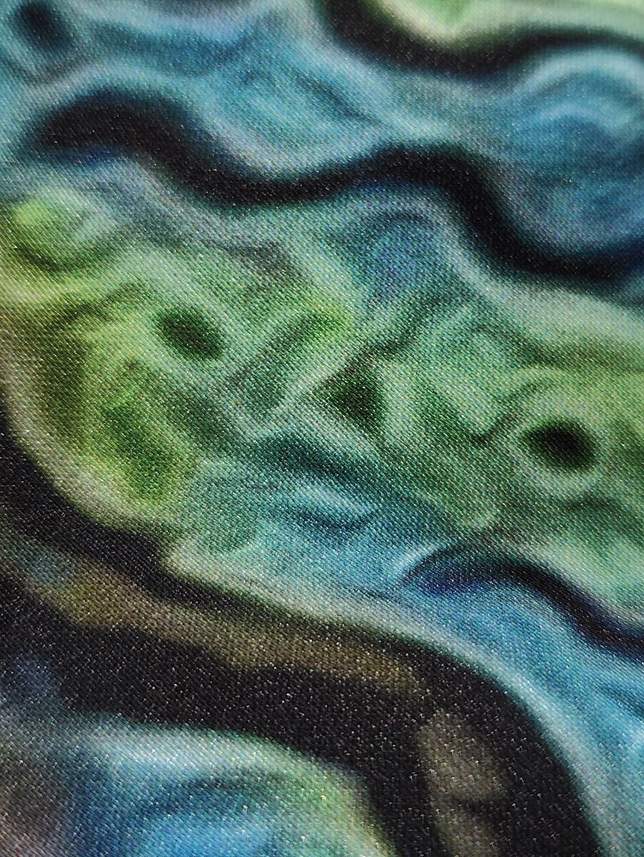 По пальцу видно, что будто печать на ткани с растягиванием маленькой картинки))