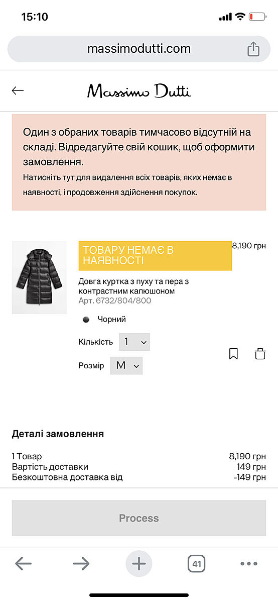 Зібралась через сайт замовити пуховик, пише, що немає розмірів. Обрала ще 2 речі, так само.