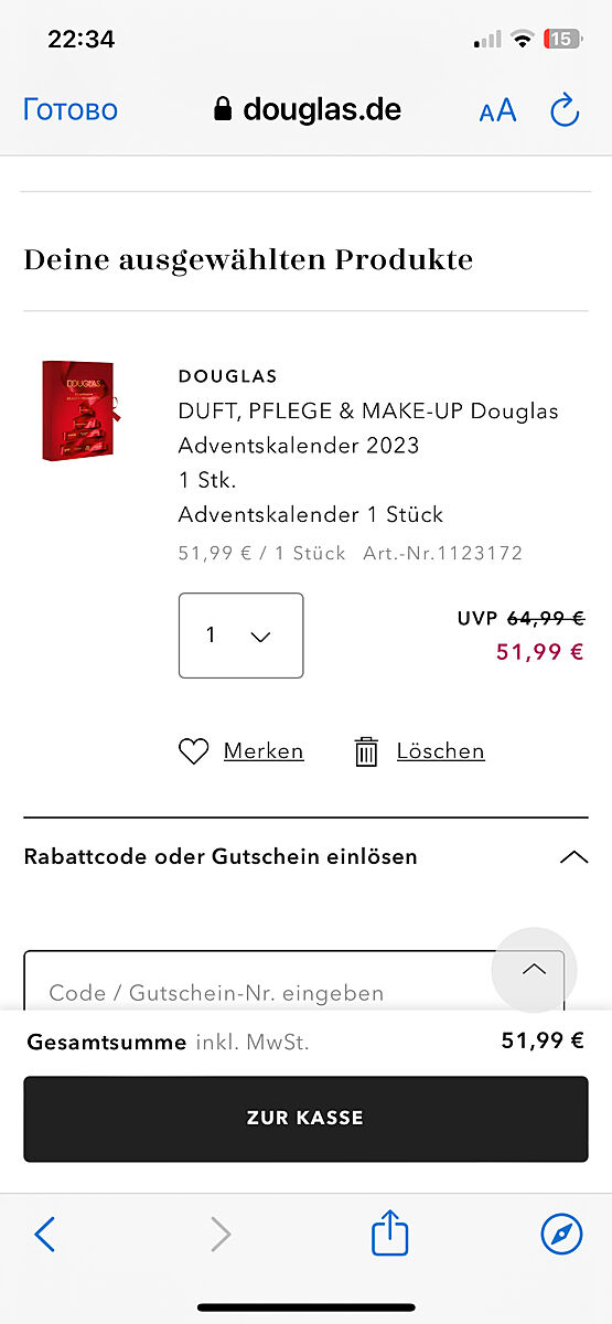 Спасибо большое, но я в Польше. Это у Вас немецкий Дуглас, я так понимаю. В Польше в онлайн-магазине их уже раскупили. Без акции был 279 зл, это около 63 евро.