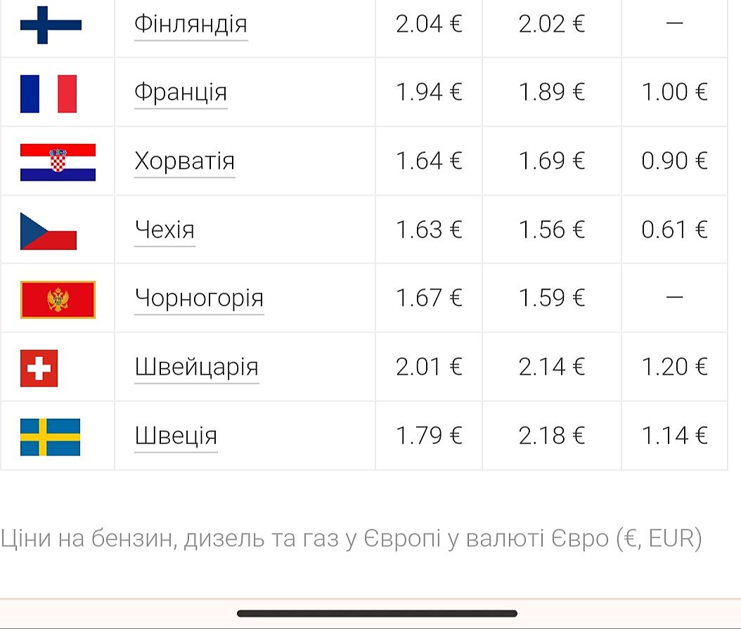 Польща 6,80 zl за літр бензину 95,дізель дорожче.Всі ж фури їздять на дизелю
