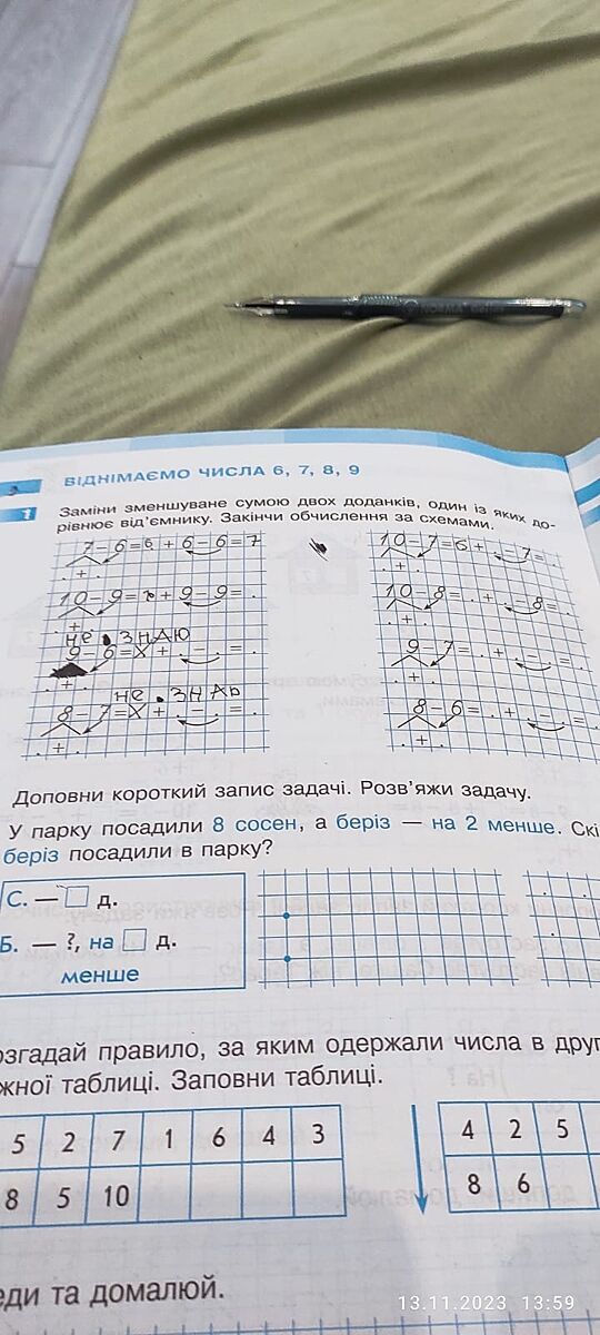 Ну мені не ясно, там де про сосни і берези, що робити там де великі квадратики з багатьох клітинок? Типу прописом писати ш і с т ь б е р е з, чи що