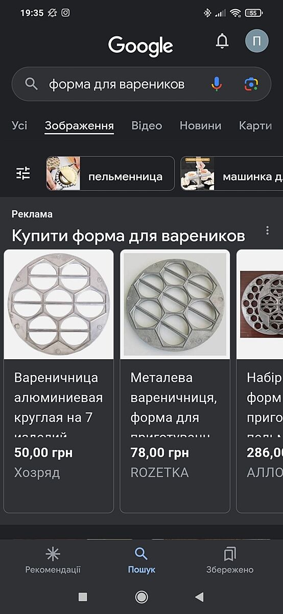 У меня реклама на шафе высветилась с формой для лепки вареников.
