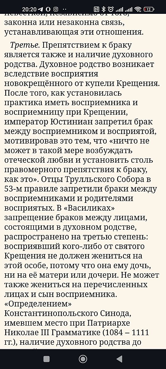 Аргумент- духовное родство. Но оно есть между одним из крестных ребёнка, выше написала каким, и самим ребёнком и его родителями. То есть нельзя выйти замуж за крестного своего сына, и нельзя выйти замуж за своего крестного, если он крестил девочку один