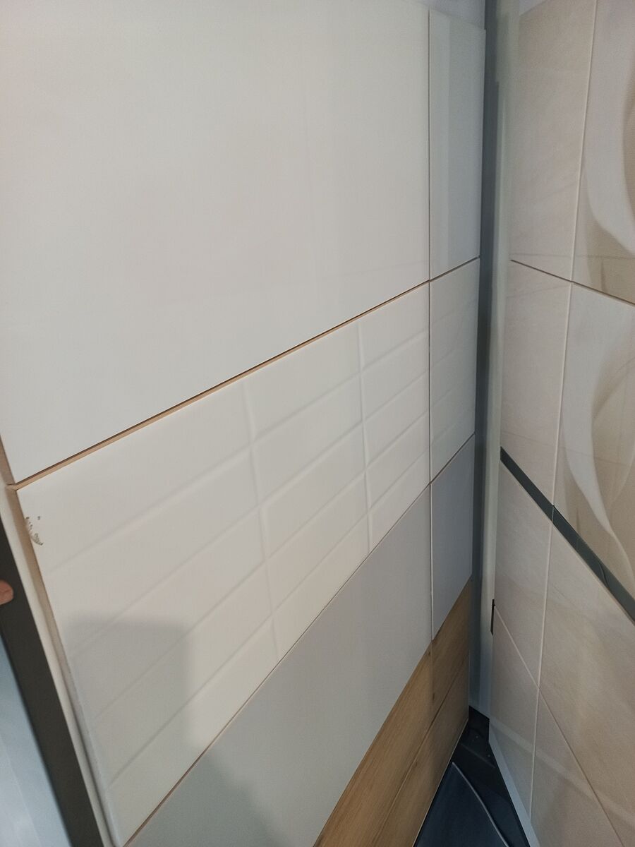 В мене ця плитка в ванній, от всі три що у вас на стенді)))) в цих квадратиках тільки 1 стіна. Це квартира під оренду, однушка. В кухні не знаю чи вона доречна, так як квадратики-кабанчики там хаотично з різними «заваленими» краями. На кухні фартух зробили з тієї ж плити, що на робочій стільниці. По ціні однаково, але наче більш естетично.
