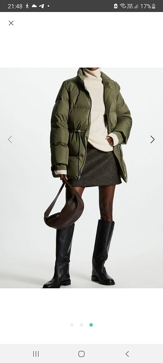 Я бачила, але не міряла. Тканина зовнішня там класна. Маю пуховик COS з такої самої тканини, але темно-зеленого кольору, йому немає зносу, аж набрид вже.