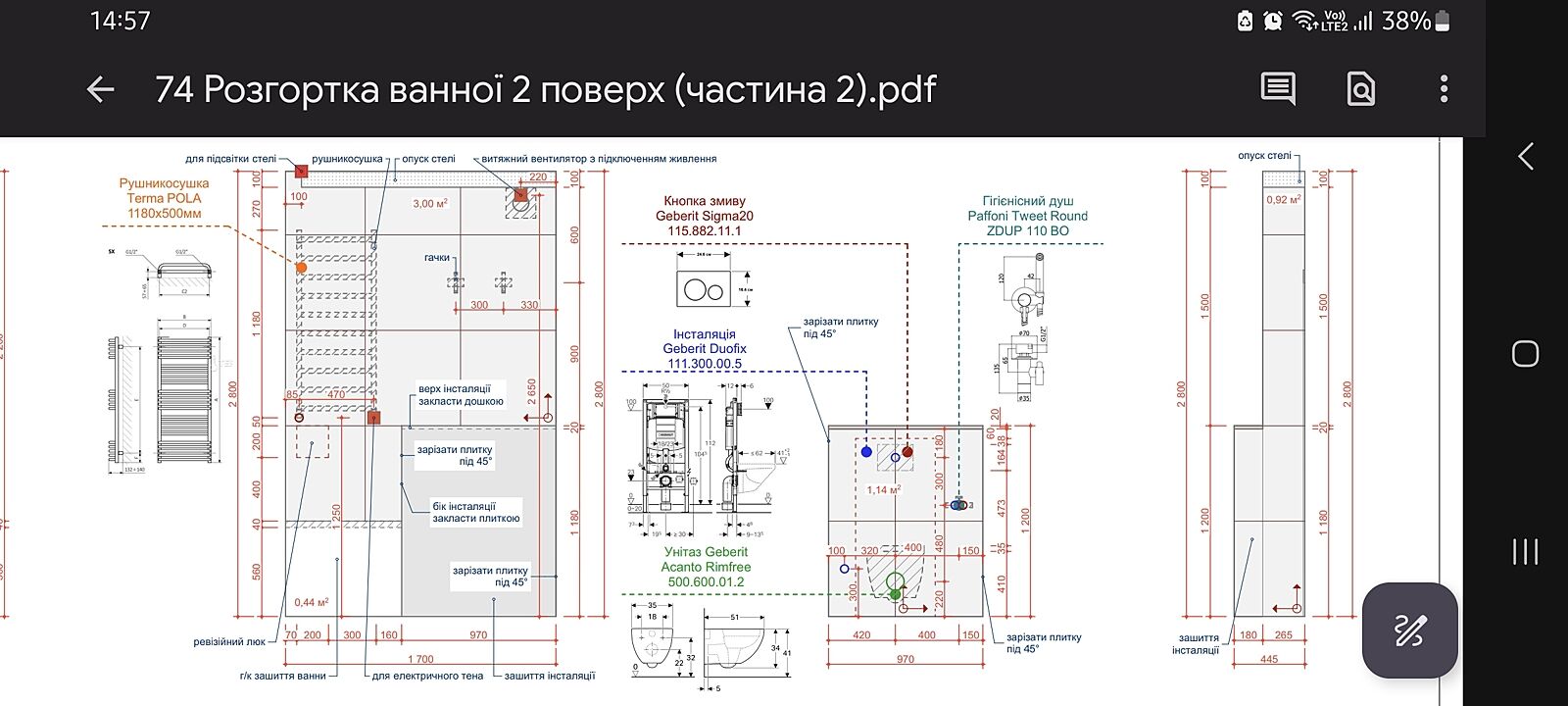 Вам для планирования кину своё, потому что похож санузел по большей стороне. Рекомендуя Вам его полностью разобрать и переложить под нужный размер. Стены, кстати, частенько из палок и штукатурки, а не из кирпича, на который надо вешать бойлер