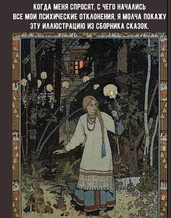 когда мачеха отправила ее к Бабе Яге, там забор был из горящих черепов