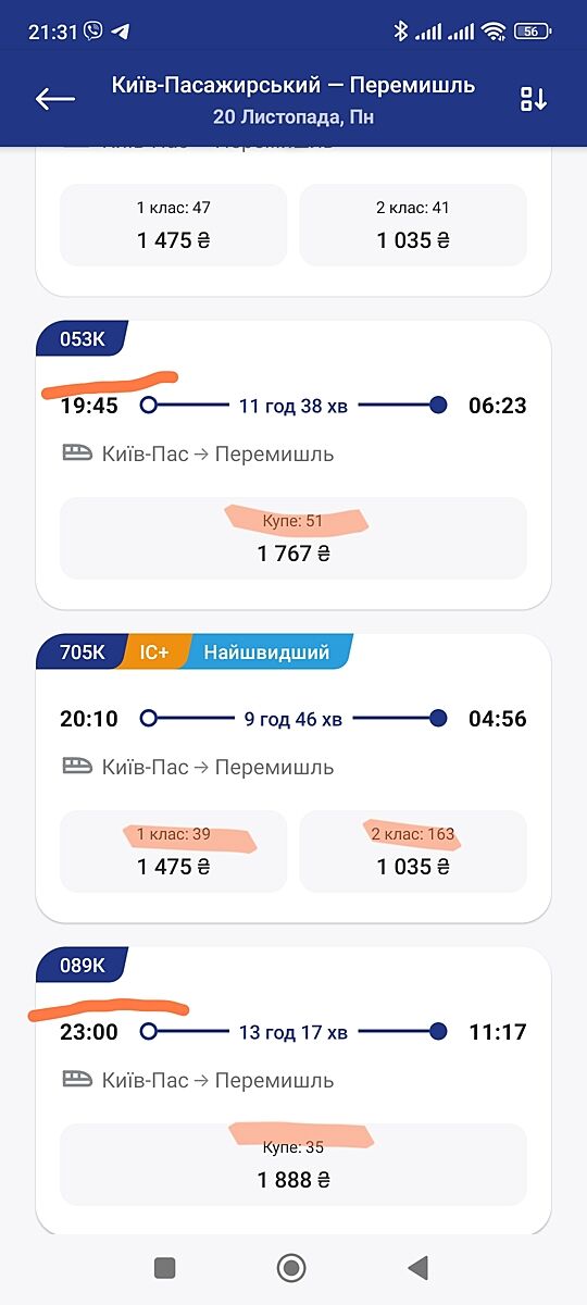 Не вижу билет на поезд Киев - Пшемышль, лежачие места. Где их найти?