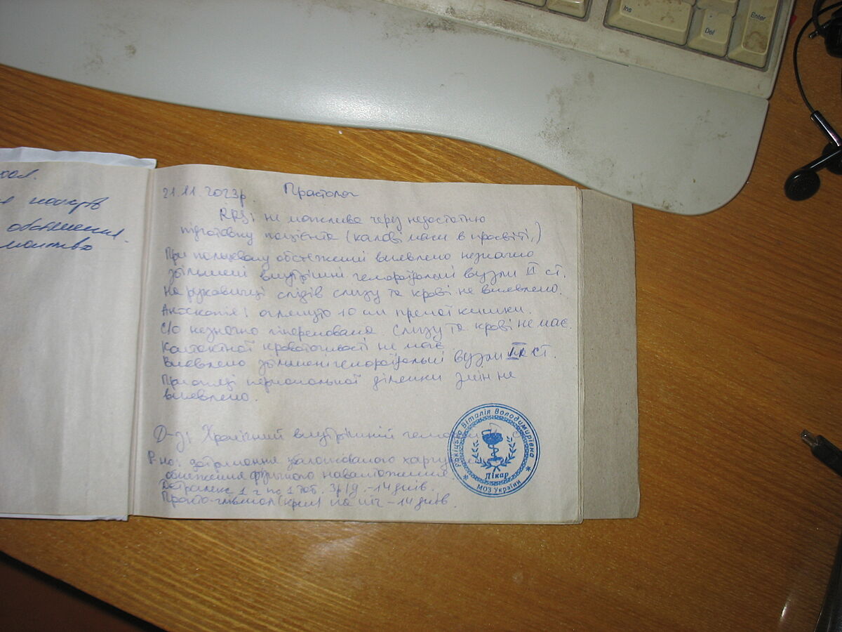 Там опис лікаря на картці і діагноз