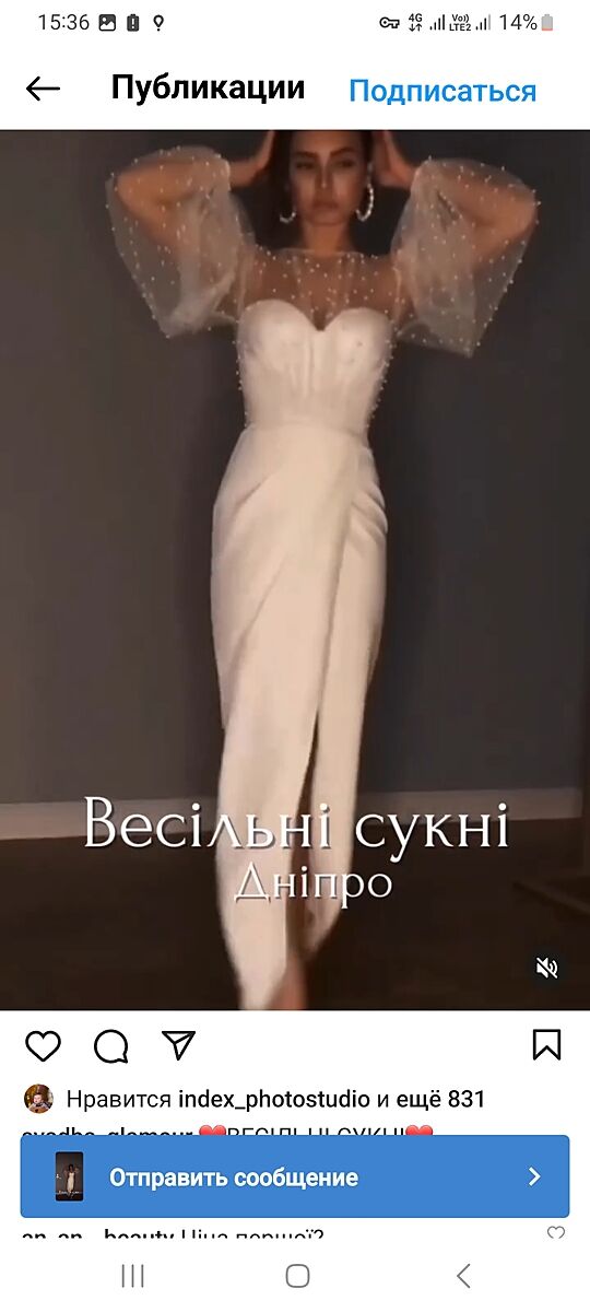 Видела похожее платье под ЗАГС.Впереди разрез был на столько большой,что при позировании фотографу было трусы видно.
