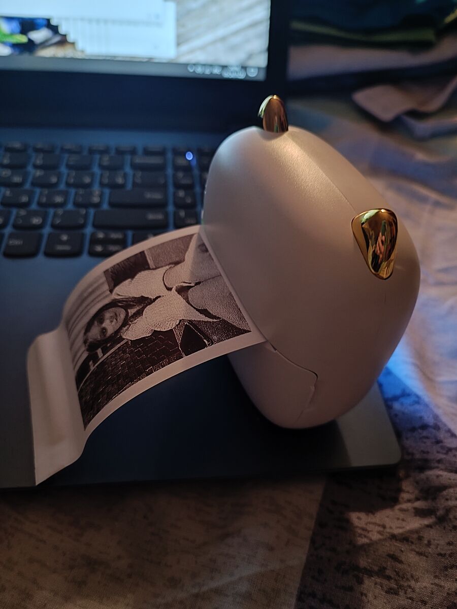 У одноклассницы дочки такой печатает наклейки. Возможно не совсем такой, но тоже мини принтер)