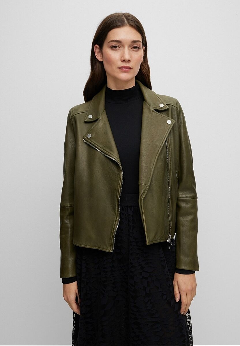 Шкіряна куртка подібного кроя, це класика, на мою думку. Якщо вірно підібрати розмір, вона не буде в обтяг.