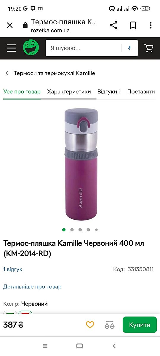 Я на аліку замовляла спочатку малому, а потім і собі. Дуже крута кружка, воно з ручкою, є видкидна трубочка , дуже круто все герметизовано і довго тепло тримає. Собі 750мл взяла на довгі прогулянки )