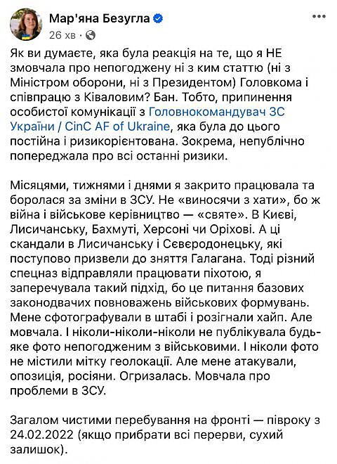 Безугла авторка скандального законопроєкту № 7351 який надавав право командирам самостійно убивати військовослужбовців за невиконання наказів без будь-яких доведених обставин, також, у ЗМІ, оцінений як спроба відновити сталінські методи смертної кари в Україні.