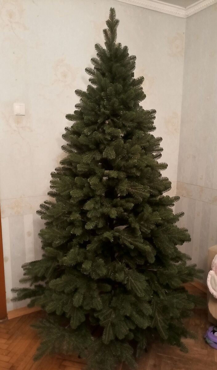 Крутая ёлка нам не нужна, литая тоже т.к. негде коробку выше 2м хранить. Брали из 2 частей.