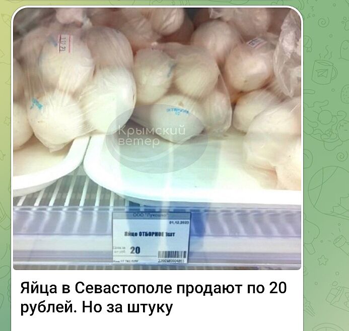 выстроились огромные очереди,люди ругались,как в 90 тые,не пускали никого даже в туалет.Вышел-очередь потерял.Несмотря на мороз,все стояли до конца,но яиц НЕ ХВАТИЛО!Как сообщает Telegram-канал «Подъем»во многих регионах РФ яйца из-за их резкого подорожания начали продавать ПОШТУЧНО. Такая практика появилась в магазинах несколько дней назад. «Подъем» приводит комментарий представителей сети «Верный», которые сообщили, что пока эта мера носит временный характер и связана с дефицитом яиц из-за неоправданно высоких закупочных цен.