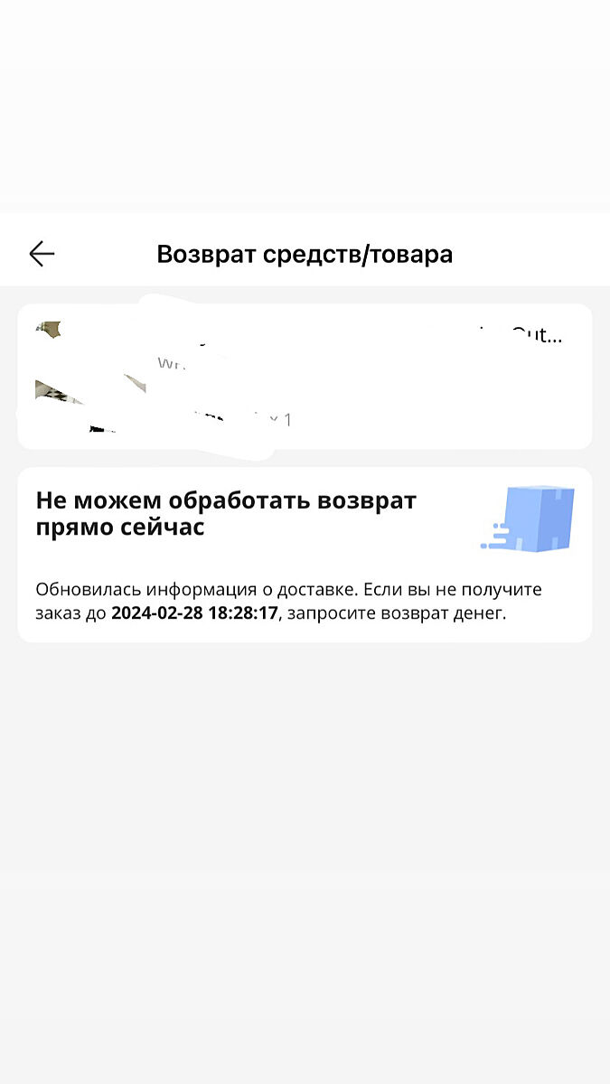 В перечне возврата написано выберите: Пришёл частично или полностью или Не пришёл товар, если выбираешь Не пришёл, то отвечает, что сейчас открыть спор невозможно.