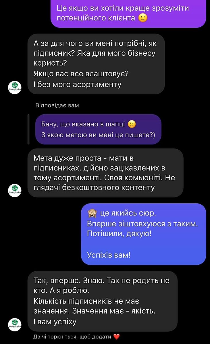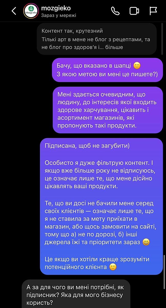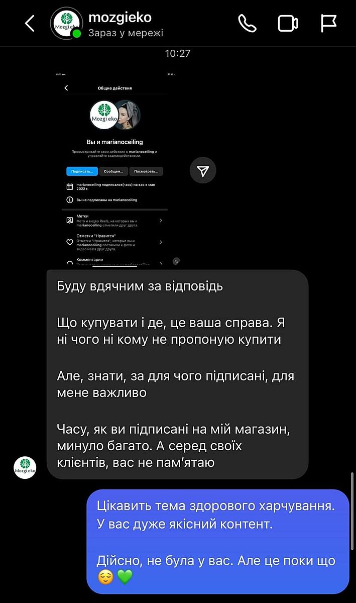 Девушка подписана на продавца. Просто смотрит. Ничего не покупает. Он на нее наехал за это.