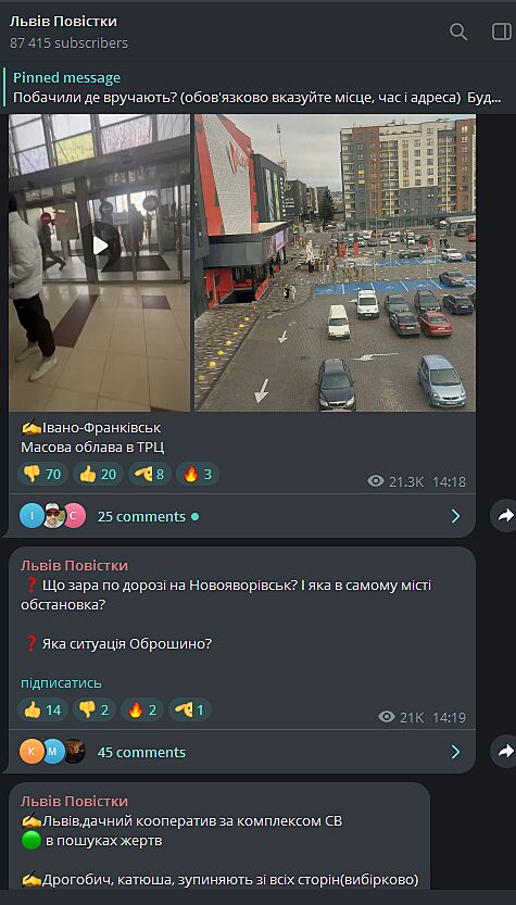 Соответствующие видео публикуют местные телеграмм-каналы. В частности, во Львове работу военкомов сняли в ТРЦ "Форум". Отмечается, что рейд там состоялся и в субботу, 9 декабря.