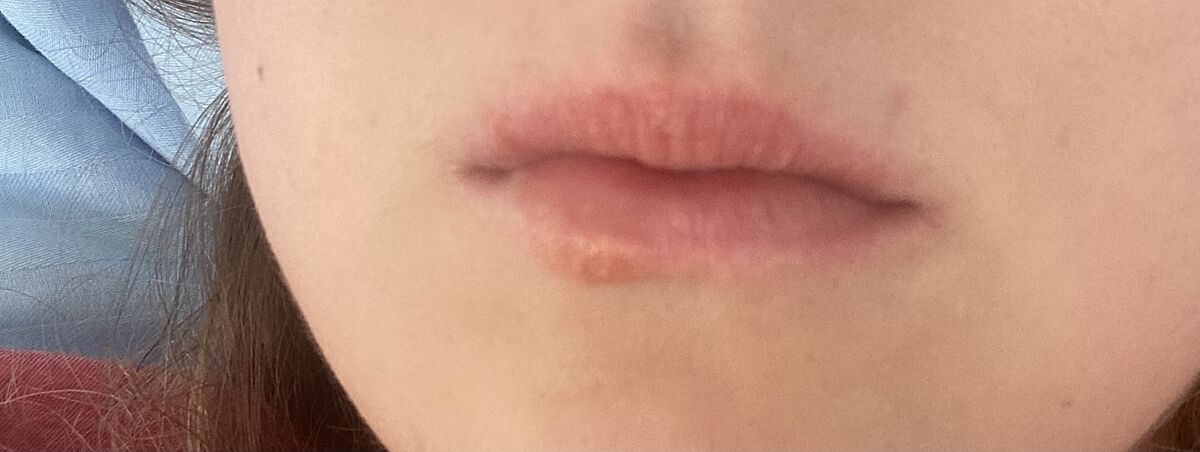 У меня такое было когда губы чрезмерно кусала или облизывала