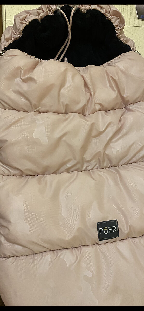 В первую зиму был малышовский на меху, это для детей рожденных в конце сентября и декабре.. Для прогулочной коляски, на следующие зимы, покупала на синтепоне, его постирать проще, ведь ребенка с обувью в него заматываешь.