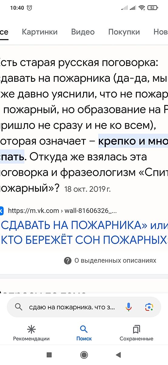 Откуда пошла фраза, когда человек долго спит, то говорят что он "сдаёт на пожарного"?)