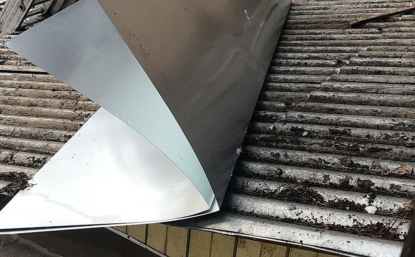 Вот эти три листа железа что на фото они привезли. И туда где я обвела на фото 1 они их всунули