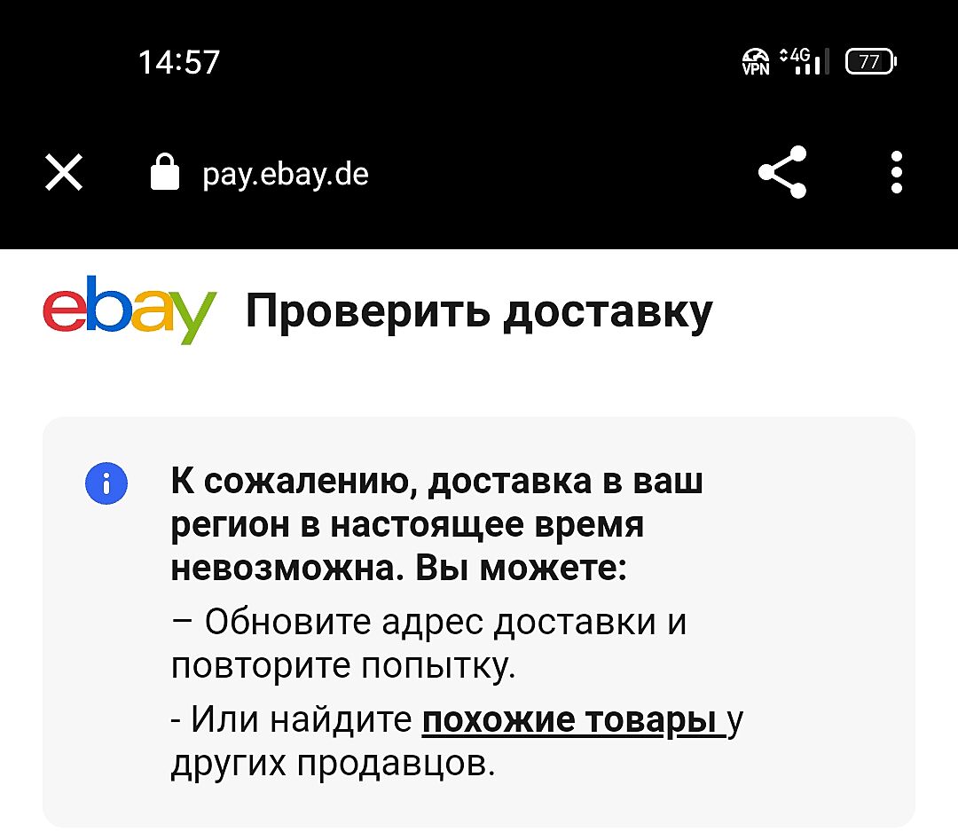 Не получается сделать заказ с сайта ИБЕЙ в город Днепр