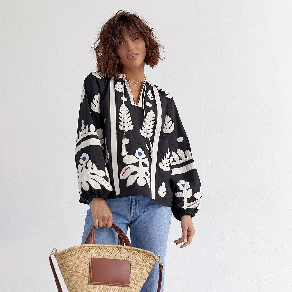 Женская вышиванка Moderika Берегиня черная с орнаментами