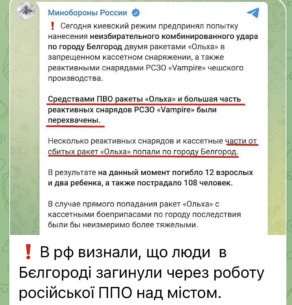 тогда как понимать, каким образом до этого их славное ПВО всё в Белгороде сбивало и было всё относительно ок, а сегодня вдруг столько жертв у них и разрушений?