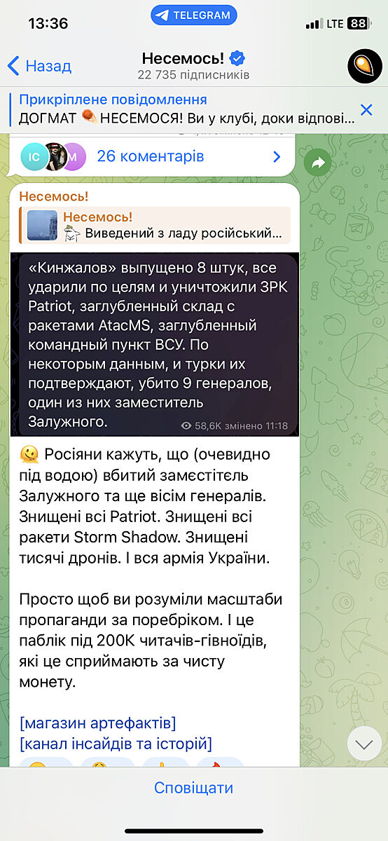А реакции русни, там по тексту. Что они выдают, что наша а там фото наших пво