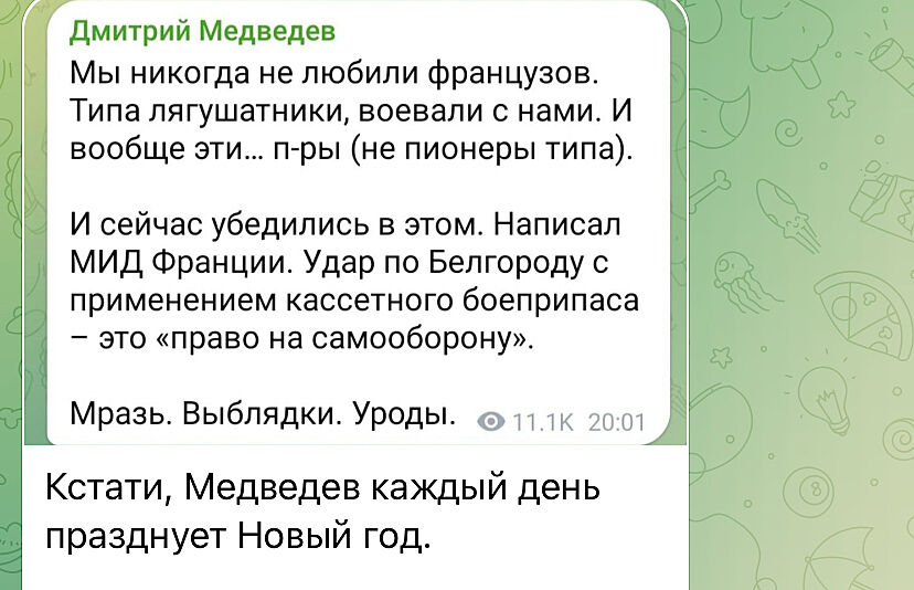 Вы просто тему так написали, может не поняли что цитата Медведева, они хотели сочувствия? Русские ж пальнутые, думали им можно, а нам - нет.