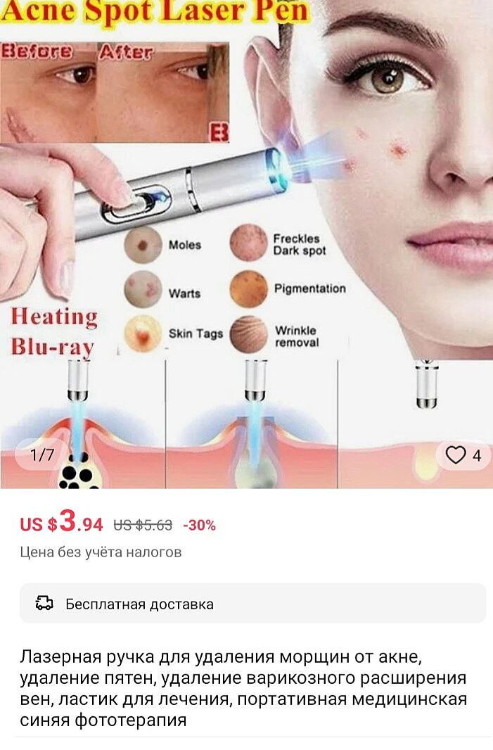 Кто-то покупал на Алиэкспресс скребок ультразвуковой для чистки лица или лазерную ручку для удаления акне? Типа таких как на фото. Ищу отзывы стоит ли такое брать.