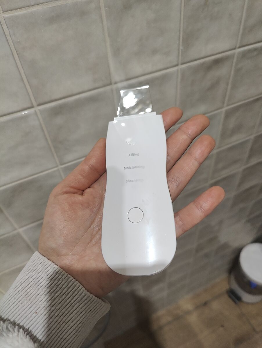 С этим скребком нужно дополнительно гидрогель. Распались лицо, нанести гидрогель под плёнку на мин15. А потом скраббером. У меня на проводе. Есть функция пиллинг, клин, и выбирается разная интенсивность и время