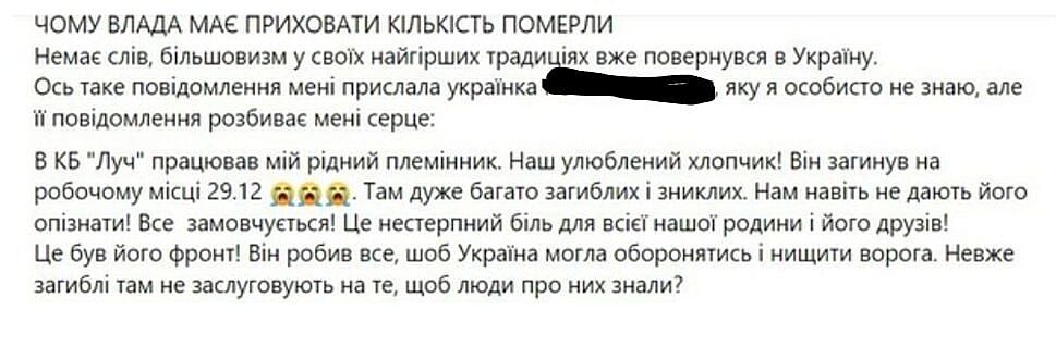 В соцсетях пищут, что при бомбардировке КБ ’Луч’ еще и сотрудников много погибло