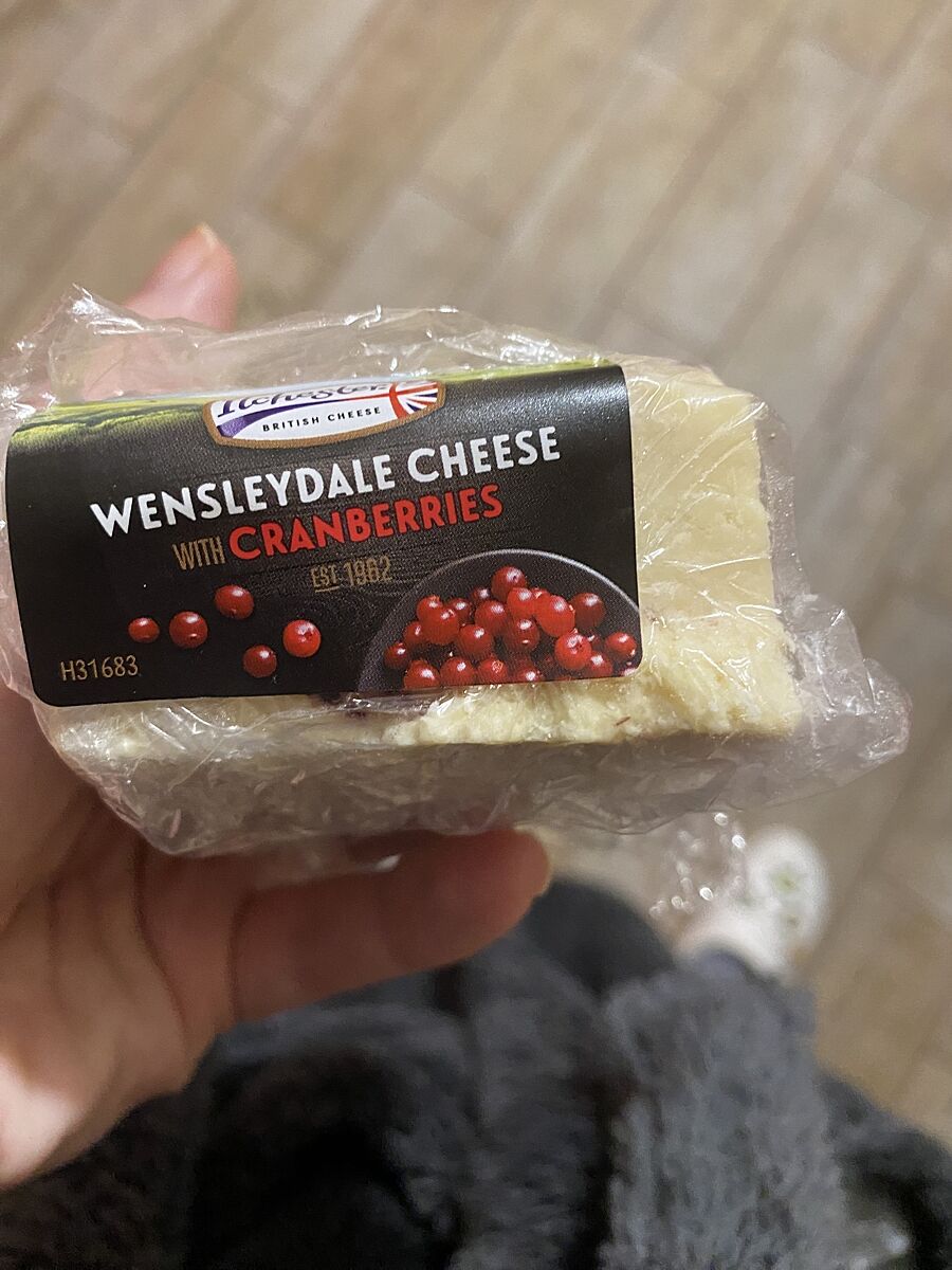 Необычный полутвердый английский сыр Wensleydale изготовленный из коровьего молока с добавлением кусочков черного и белого шоколада и апельсиновыми цукатами. Это лакомство изготавливают по старинному рецепту в городе Илчестер, Англия. Сыр созревает от 6 до 12 недель и имеет насыщенный сливочный вкус и влажную рассыпчатую текстуру. Уэнслидейл часто используют в качестве ингредиента во всевозможных десертах. Сыр идеально подходит ко всем свежим фруктам, хорош с бокалом легкого вина или шампанского, а также с чашкой чая или кофе. Венследейл сочетается с крекерами, печеньем, сладкой выпечкой. Уэнслидейл подается в качестве десерта и обычно разрезается на кубики на сырной доске.