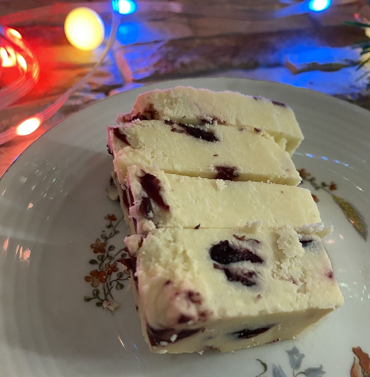 Вот такой с клюквой - крупинчатый, нежный, сладковато-сливочный. Интересный вкус и структура, необычно. Есть такой же с ананасом, но не брала еще. Вот мне каких-то таких хочется попробовать