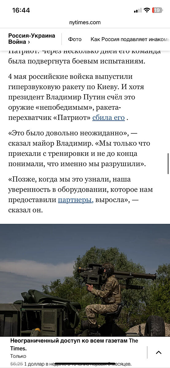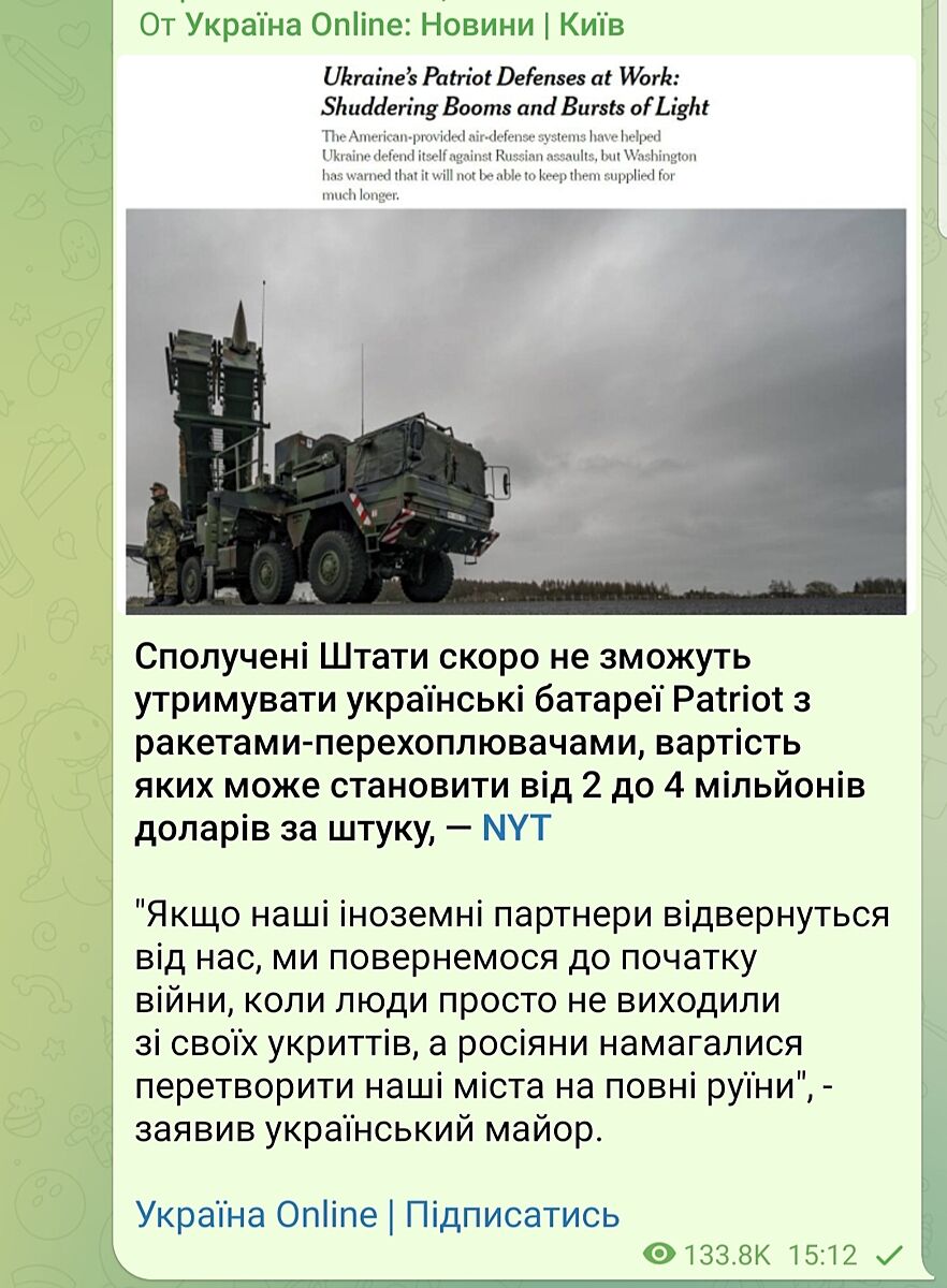 В целом, этот материал NYT о том, насколько ’Пэтриоты’ крутые, как они помогают Украине отбивать массированные российские атаки и как предательски будет перестать их поставлять. Так что посыл верный.
