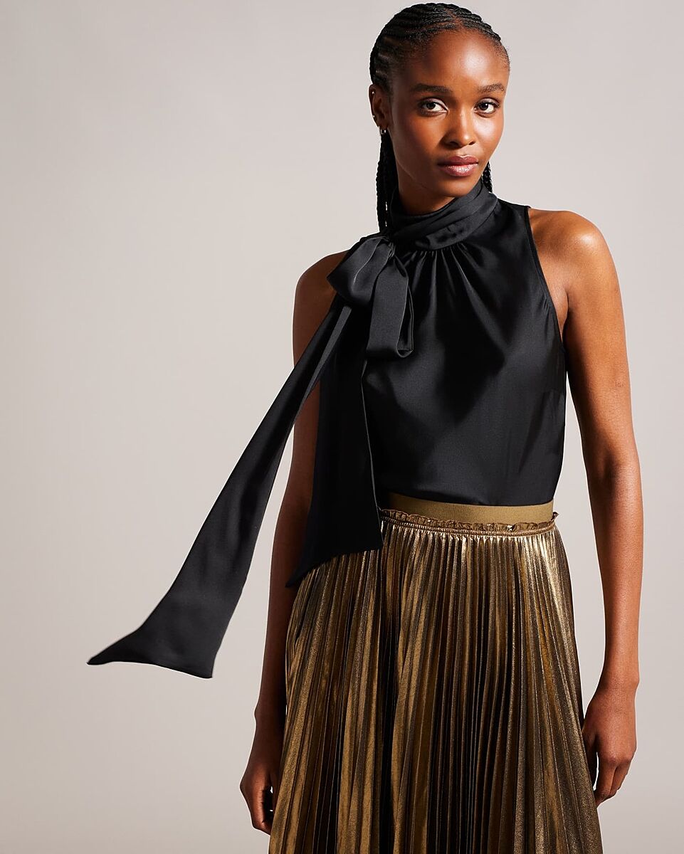 Ну да, в юбку придется запихать черную блузку. Но думаю, там плотный сатин. У меня есть подобная черная. Запихиваю и норм.