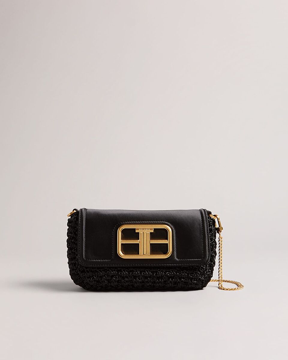 А аксессуары как Вам? Сумку пока перевариваю. Не очень хочется черную кожаную на летнее пати. Подумала, что из сатина и вязки облегчит образ.