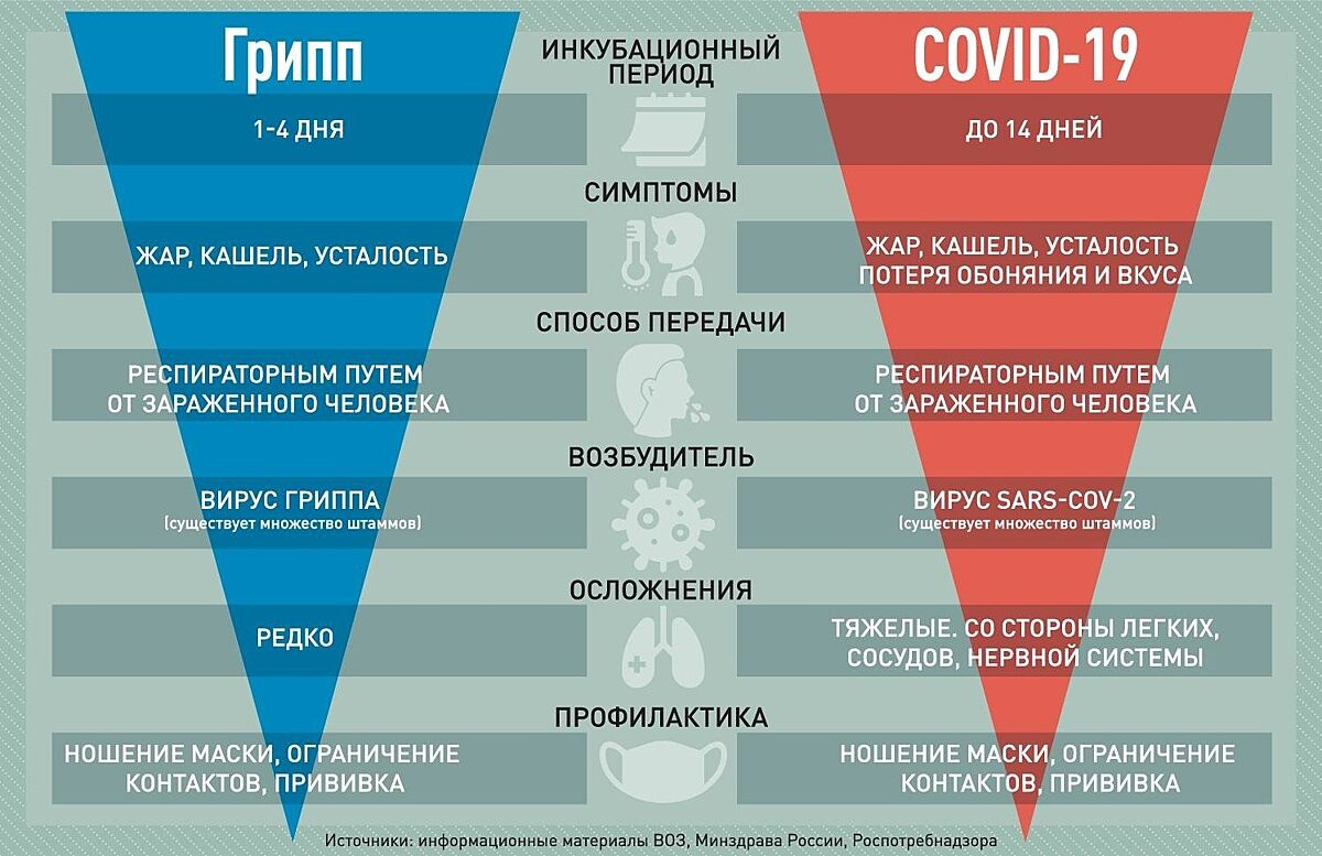 Вот даже сравнения. Ковид, кто бы, что не говорил страшнее, да от гриппа тоже умирают, и он тоже может серьёзно повлиять на здоровье. Но ковид больше навредил людям. И он заразнее