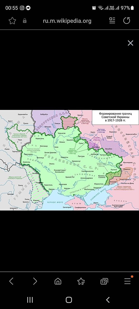 И в старпосте слезливо написано о том, что в 50-х годах у нас забрали территории в обмен на Крым. Причем тут нарисованная карта 1918 года вообще? Не надо притягивать желаемое к действительности )))