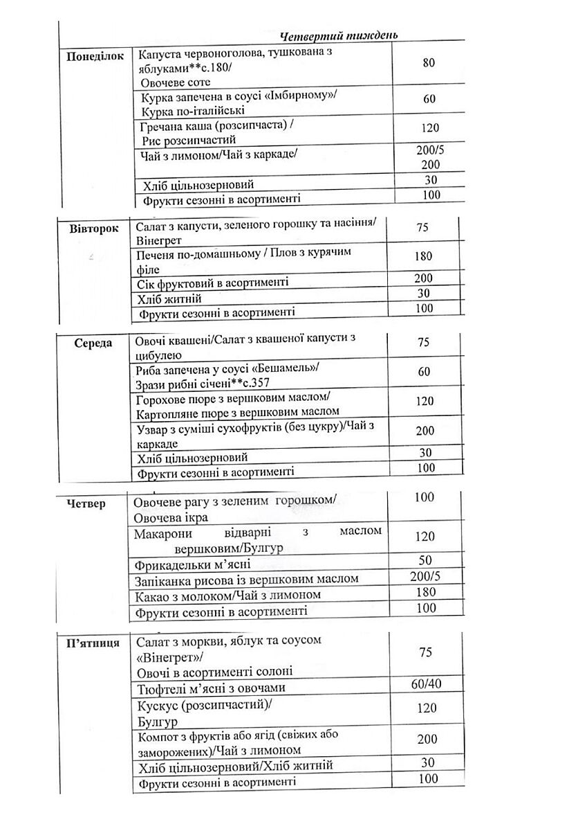 Сам клоотенко мені не симпатичний, але меню не погане. Додаю файл з харчуванння в нашій школі