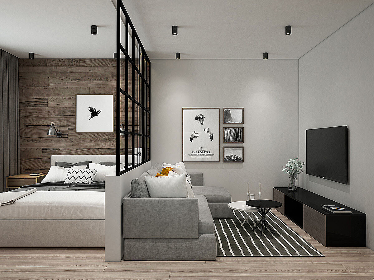 Так і планую зонувати однокімнатну квартиру. Кімната 18кв.м. довжину ділю на 2,30м під спальню і 3,30м під гостьову частину.