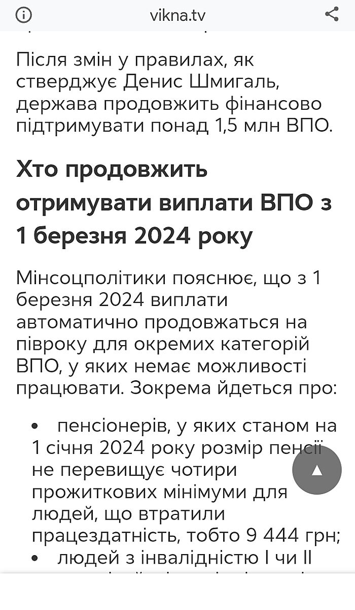 Хто продовжить отримувати виплати ВПО з 1 березня 2024 року