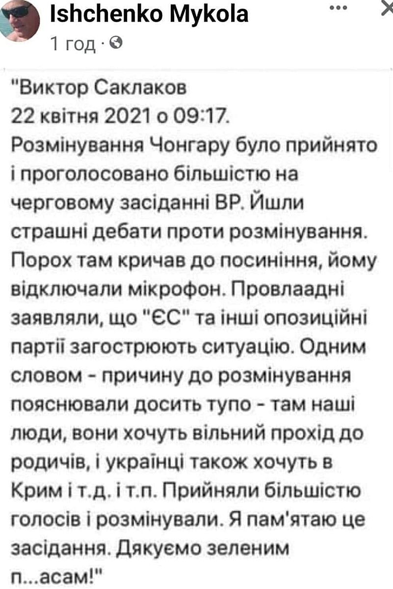 Розміновуванням Чонгару займалися під керівництвом презедента Зеленського єрмак та верещук,до чого тут Залужний?