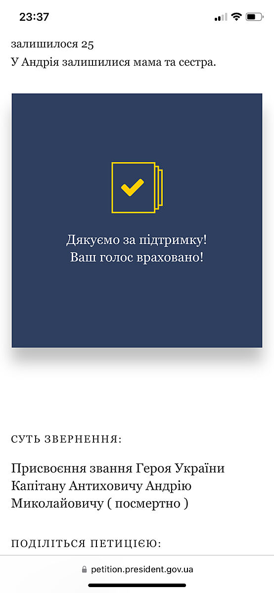 Прошу підтримати петицію посмертно нагородити Героя