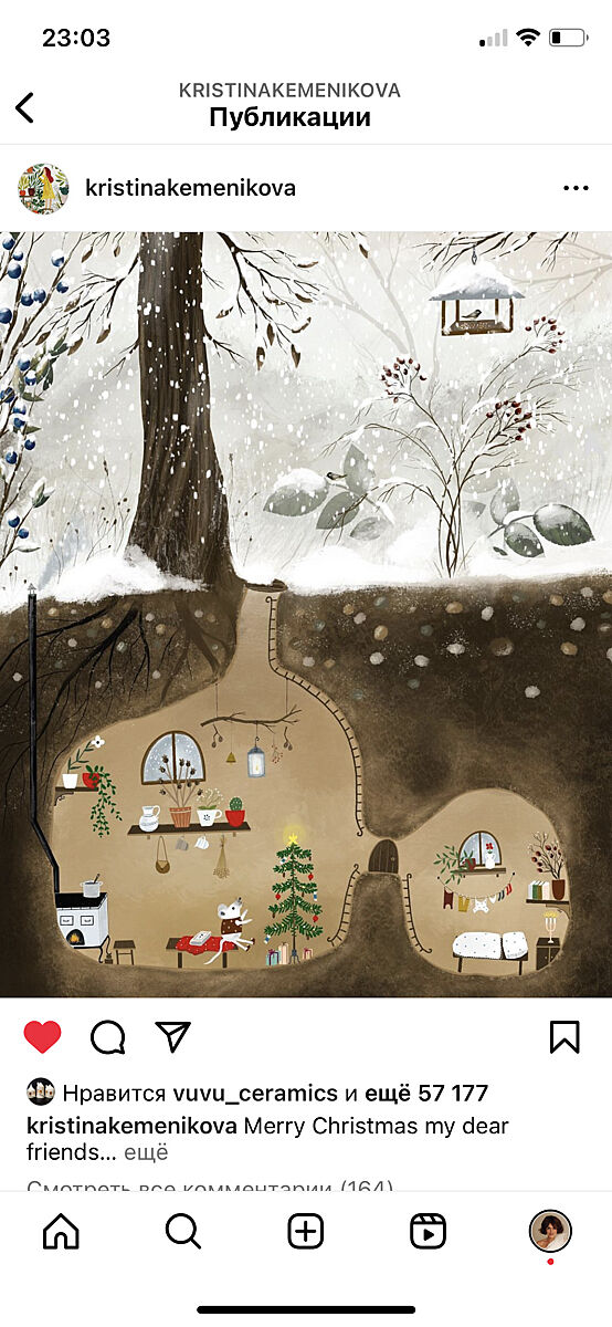 А еще, у меня одна забавная особенность, прямо интересно, это что-то значит с точки зрения психологии? Мне очень нравятся рисуночки, как звери живут в норках под землей😆 У меня была лет 20 назад такая картинка, там 2 лисицы сидят в норке, у них курочка на столе, а сверху над ними зима и снег. И эта картинка была олицетворением домашнего уюта для меня, типа там холодно и ужасно, а эти лисицы друг у друга есть и с курицей😆